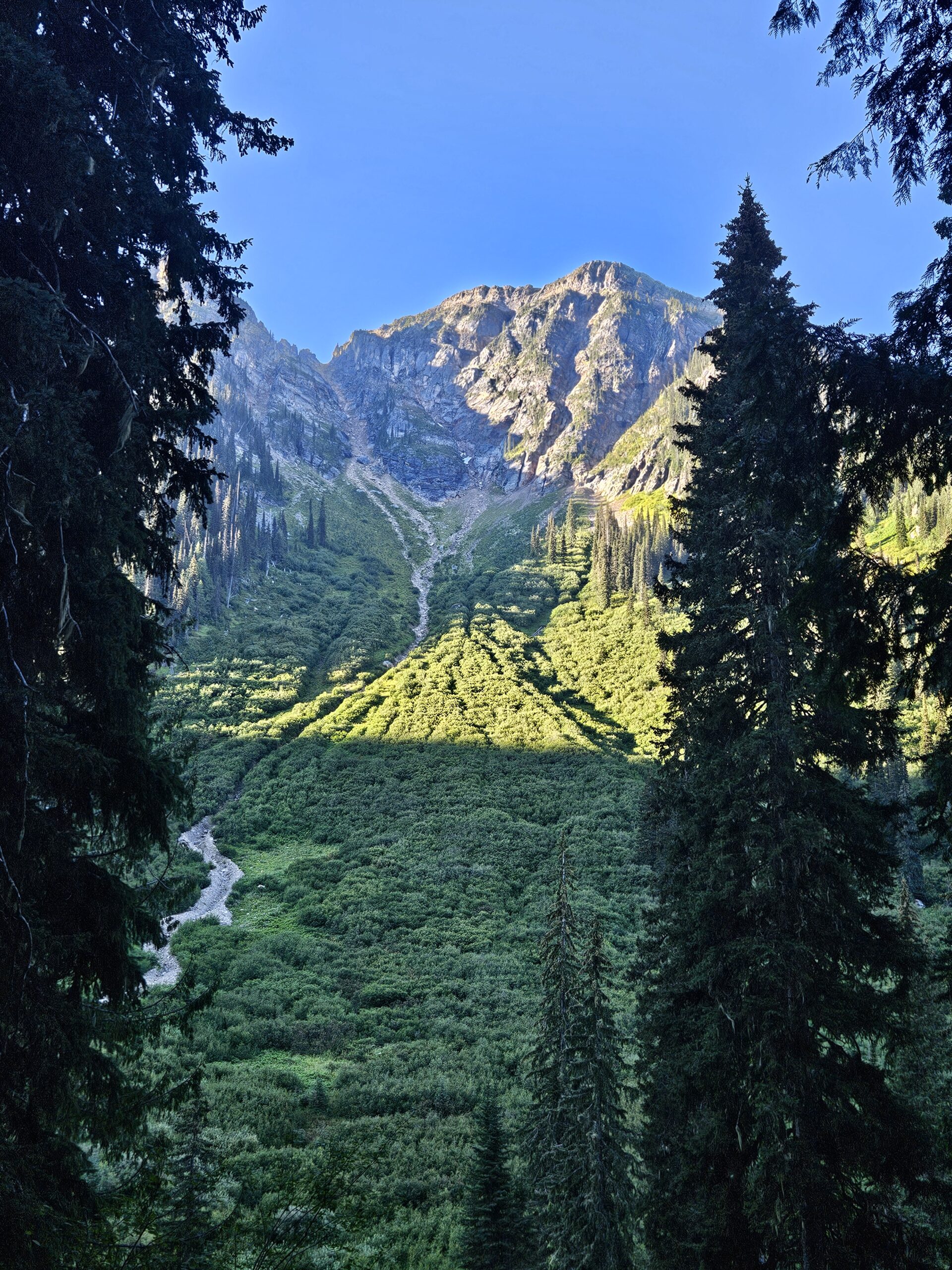 The final stretch back to the trailhead was easy to follow, thanks to the flagging and clear path, though tough on my knees. By the time I reached my truck, I was tired but happy. The entire trip took me 9.5 hours car-to-car, covering 21 km and about 1,225 m of elevation gain. I spent roughly two of those hours filming for my YouTube channel, so the outing could be done faster. Still, this hike is rewarding from start to finish. Even if you only went as far as Monashee Lake, it would be worth it. With the option to set up a base camp and explore multiple surrounding peaks, this is an incredible area, and I can’t wait to return to try for Pinnacle’s summit again.